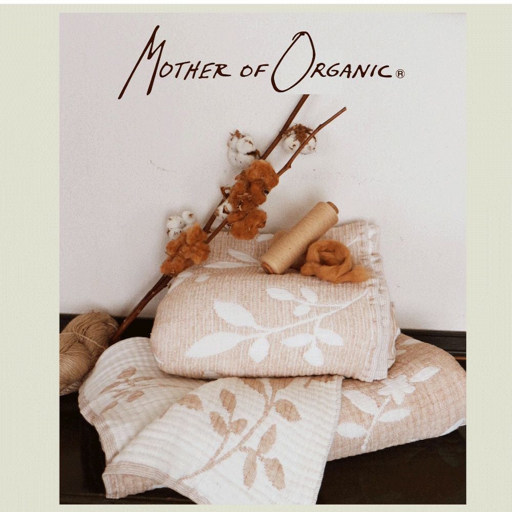 無農薬、化学肥料を一切使用しない茶綿畑で作られたコットンを使用したふわふわの膝掛けです。肌寒いこの時期から底冷えのする冬の間は手放せません。