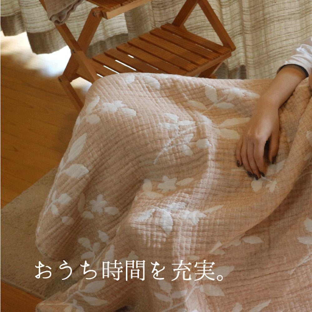3. 【成願ガーゼ】オーガニックリーフ柄ガーゼ膝掛け