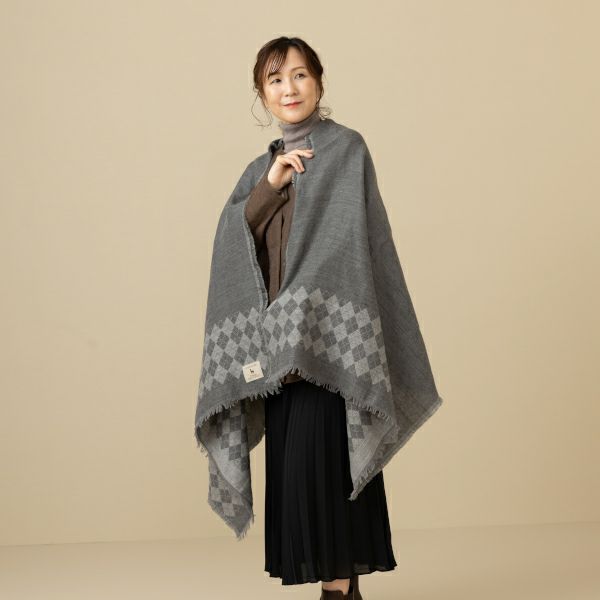 【アルパカ】2重ガーゼストール(アーガイル柄)