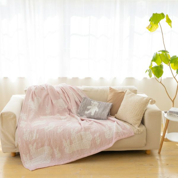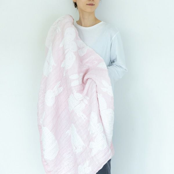 【成願ガーゼ】ワンダフルワールドくまうさぎ柄浮かし織りケット(シングルサイズ)