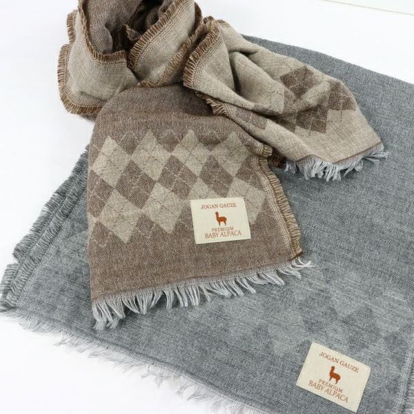 【アルパカ】2重ガーゼストール(アーガイル柄)