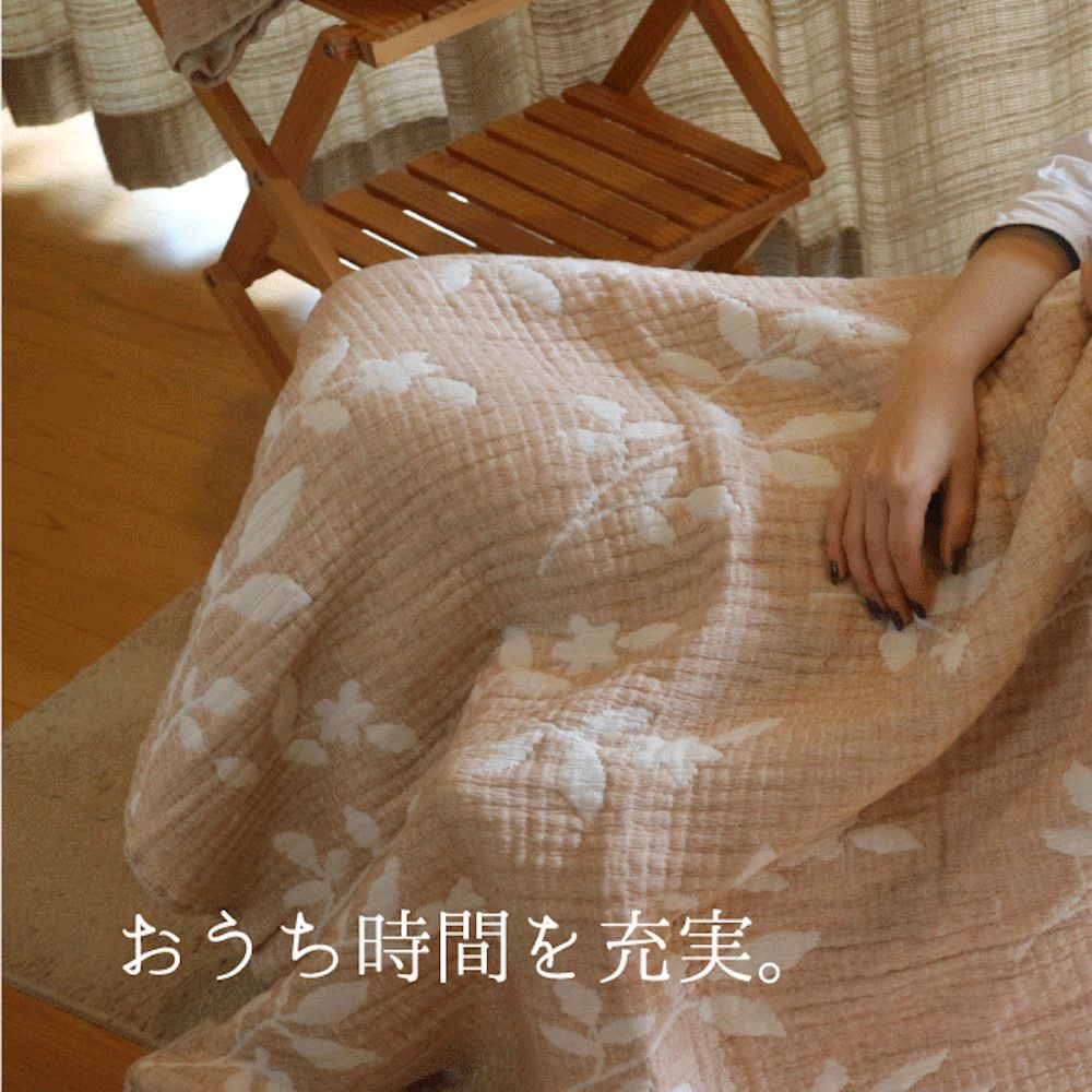 【成願ガーゼ】オーガニックリーフ柄ガーゼ膝掛け