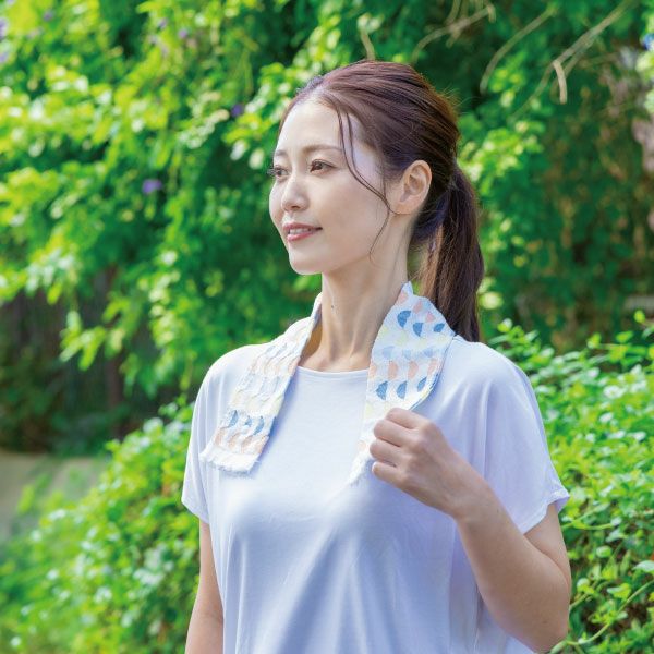 【クール】ポケット付きマフラーハーフムーン柄(保冷剤付)【おまとめ購入対象商品】