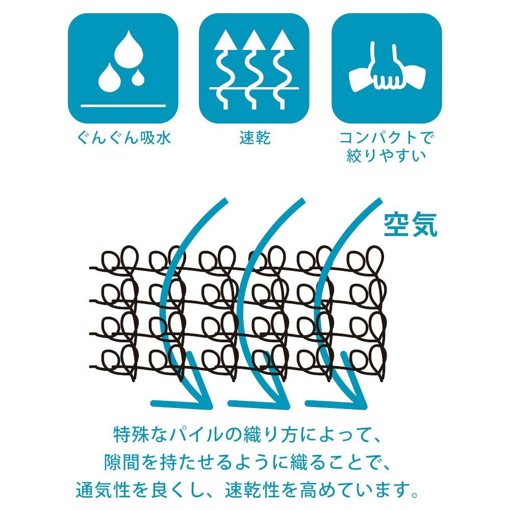 老舗のタオルメーカーの技術を駆使した特殊織りでぐんぐん吸水し速乾性も高めています。
