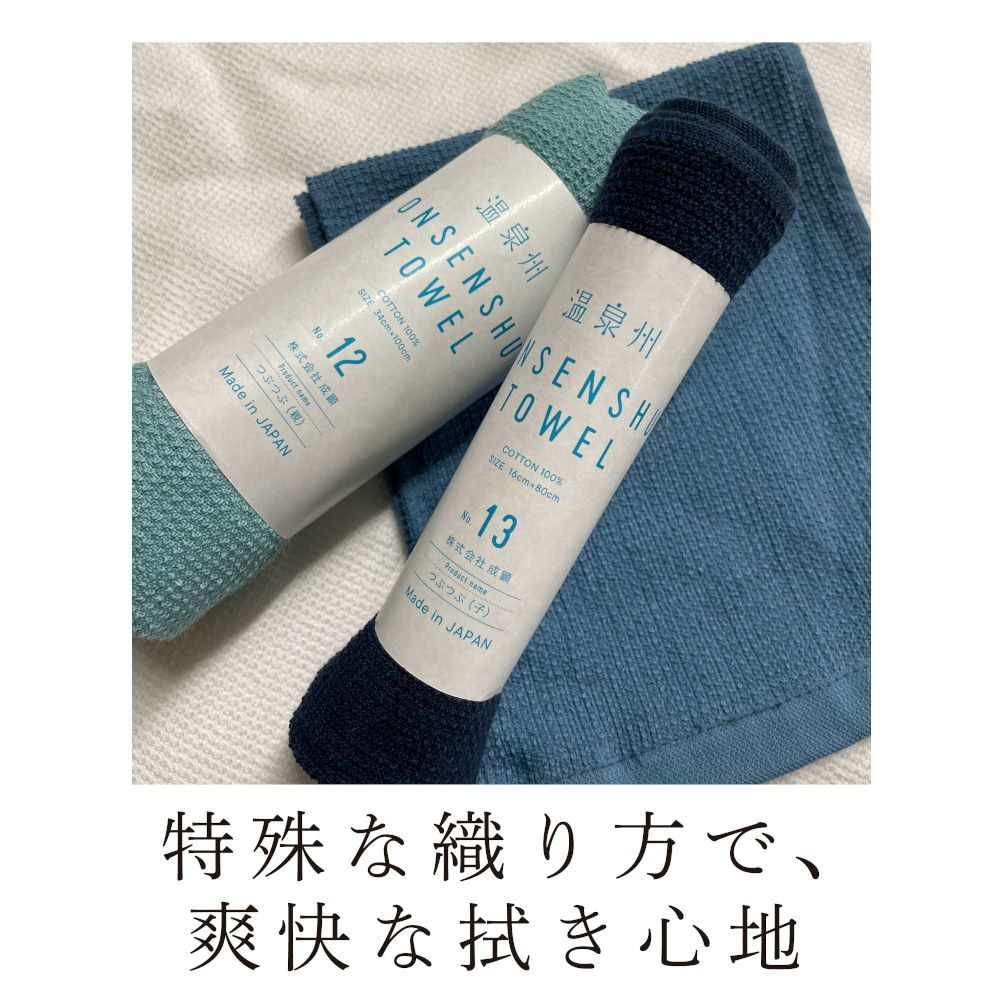 戦後に手ぬぐいに代わるものとして生まれた浴巾と呼ばれるタオルで、家庭から商業の場でも使われるようになり、温泉タオルとして定着しました。