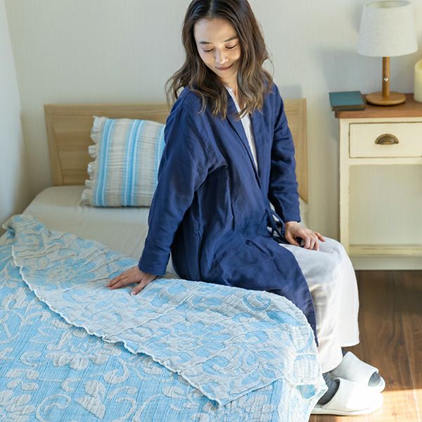 【成願ガーゼ】リネンミックスダリア柄ガーゼケット(シングルサイズ)