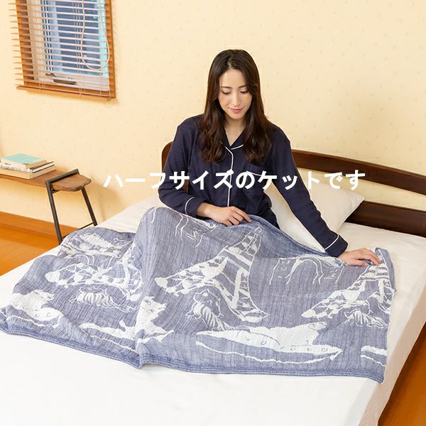 【成願ガーゼ】ワンダフルワールドねこ柄浮かし織ガーゼケット(シングルサイズ)